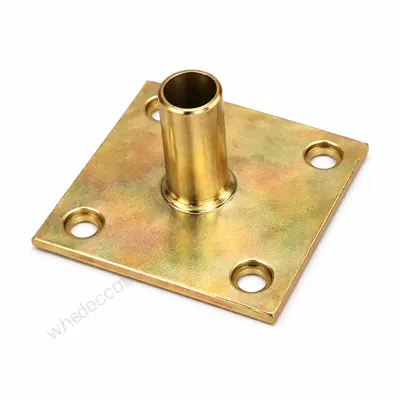| Features | Heavy-duty metal body, corrosion-resistant finish, precision welded pipe socket, 5 anchoring holes, flat stable base |